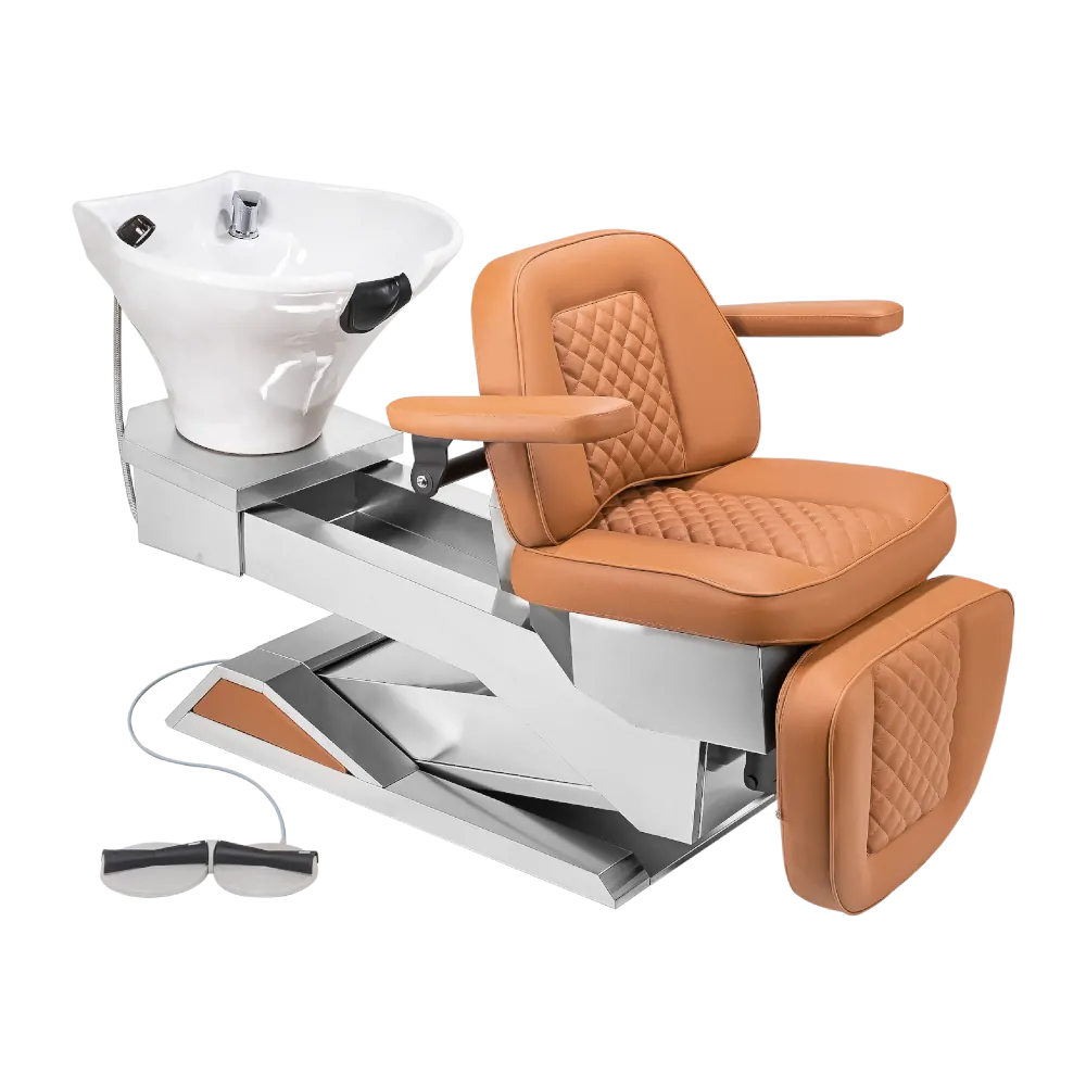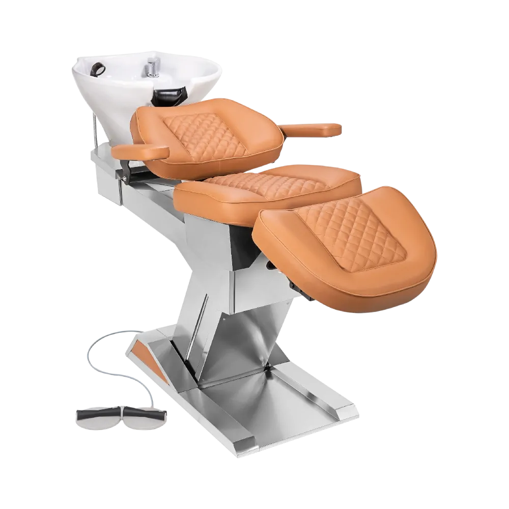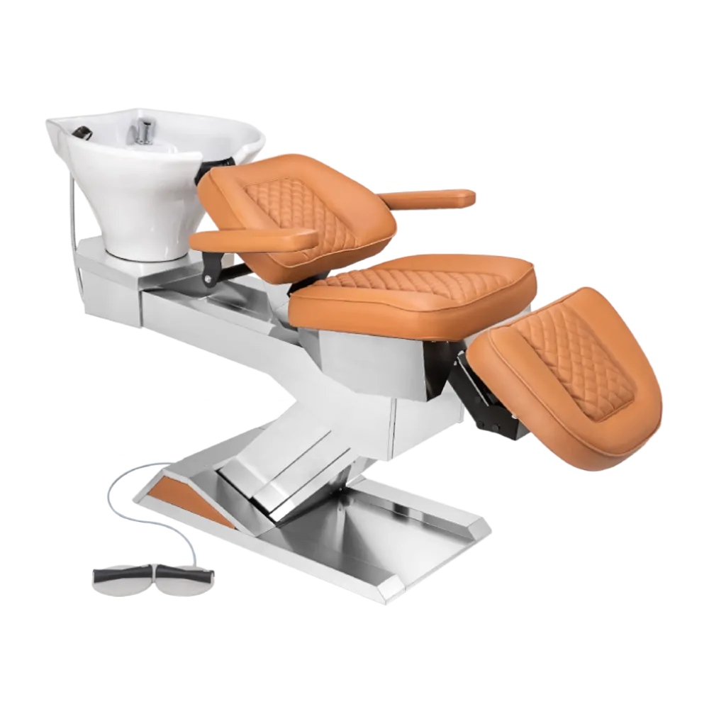 Produzido com materiais nobres, possui acionamento por controle (pedal), múltiplos ajustes de inclinação e elevação, podendo assumir uma posição totalmente horizontal. Na posição mais baixa, pode ser usado com o auxílio de um Mocho, promovendo ergonomia, conforto e descanso tanto para o cliente quanto para o profissional.