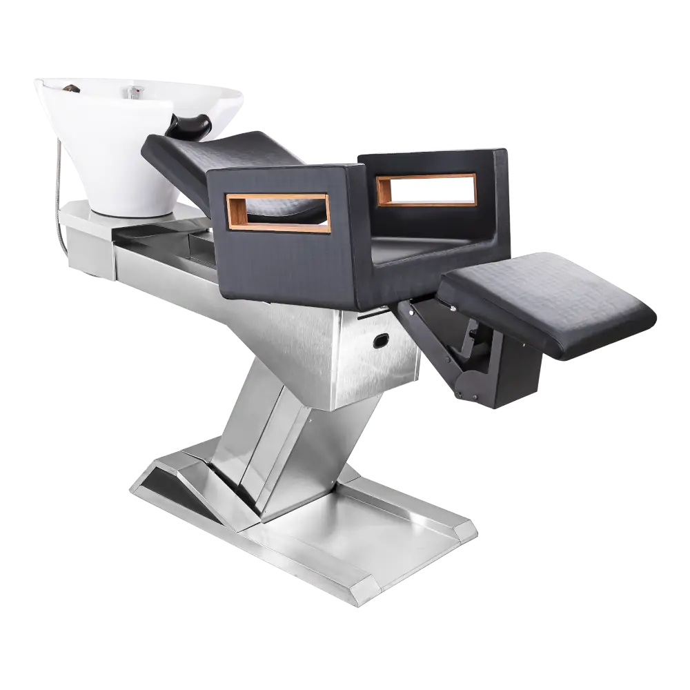 Produzido com materiais nobres, possui acionamento por controle (pedal), múltiplos ajustes de inclinação e elevação, podendo assumir uma posição totalmente horizontal. Na posição mais baixa, pode ser usado com o auxílio de um Mocho, promovendo ergonomia, conforto e descanso tanto para o cliente quanto para o profissional.